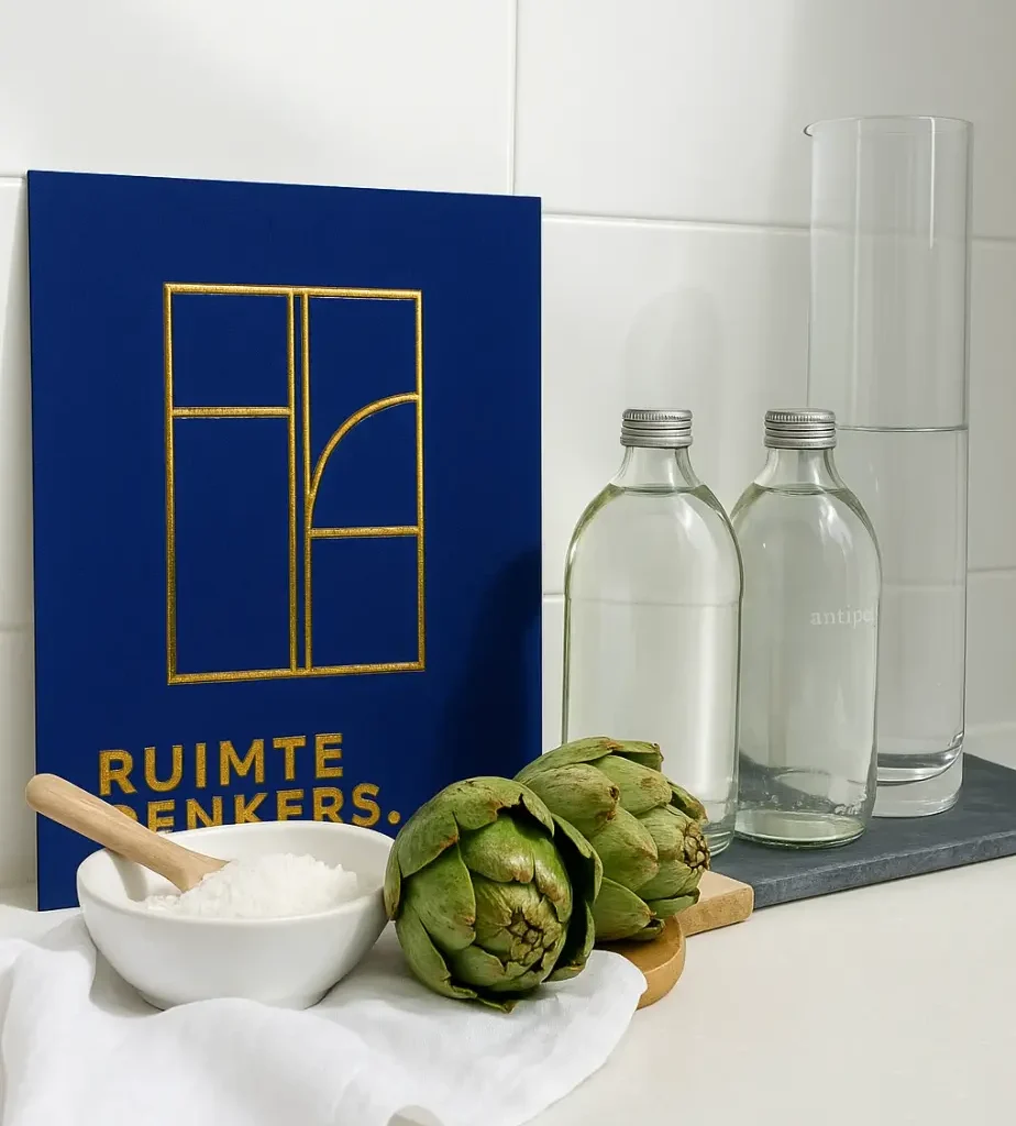 This application demonstrates how the architectural identity of Ruimtedenkers translates from a technical drawing into a premium, tactile brand experience.
